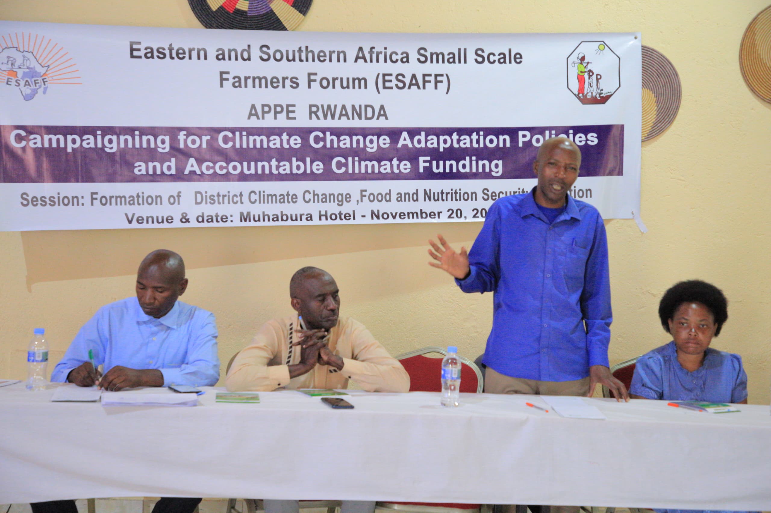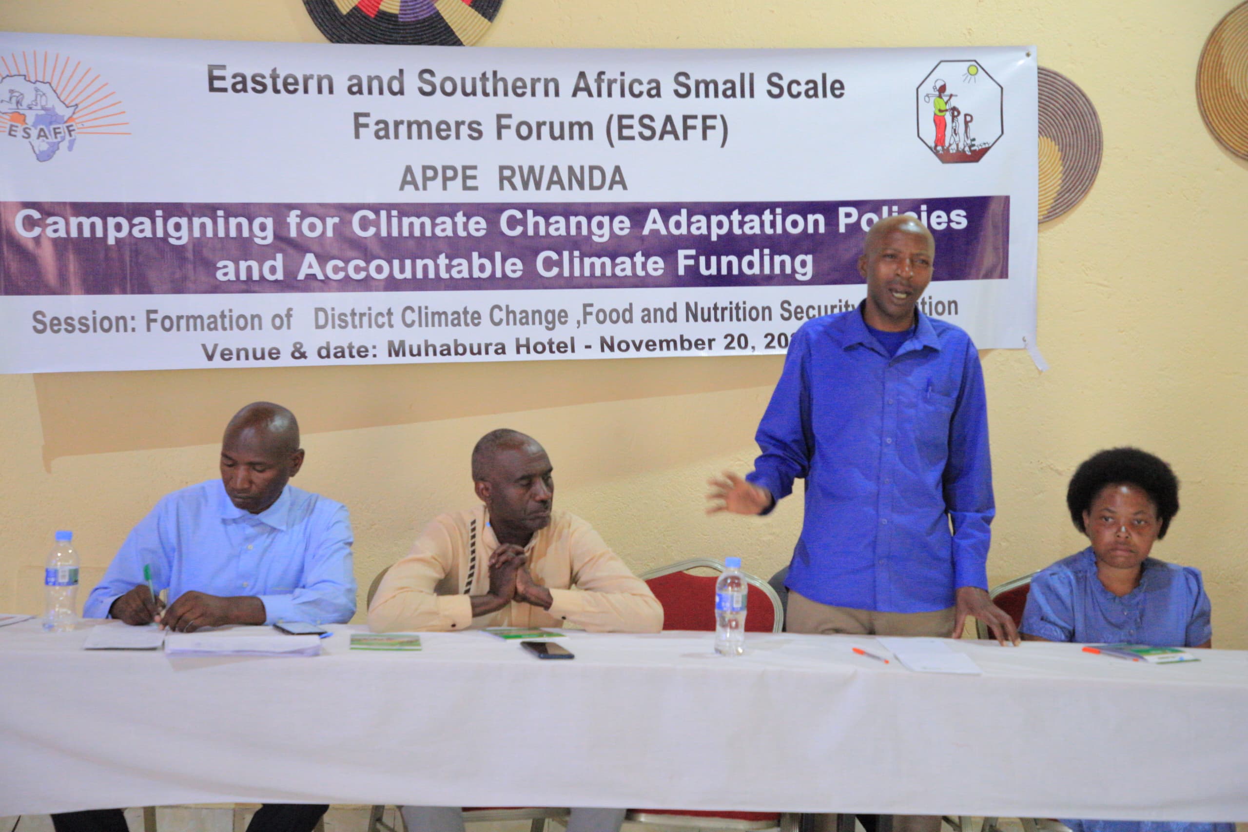 The message was delivered during a sensitization and advocacy meeting organized by Appui au Paysant Vulnérable pour la Protection de l’Environnement (APPE), a farmers’ organization affiliated with the Eastern and Southern African Small-Scale Farmers Forum (ESAFF). The engagement was part of a project sub-granted by ESAFF that focuses on campaigning for climate change adaptation policies and accountable financing.