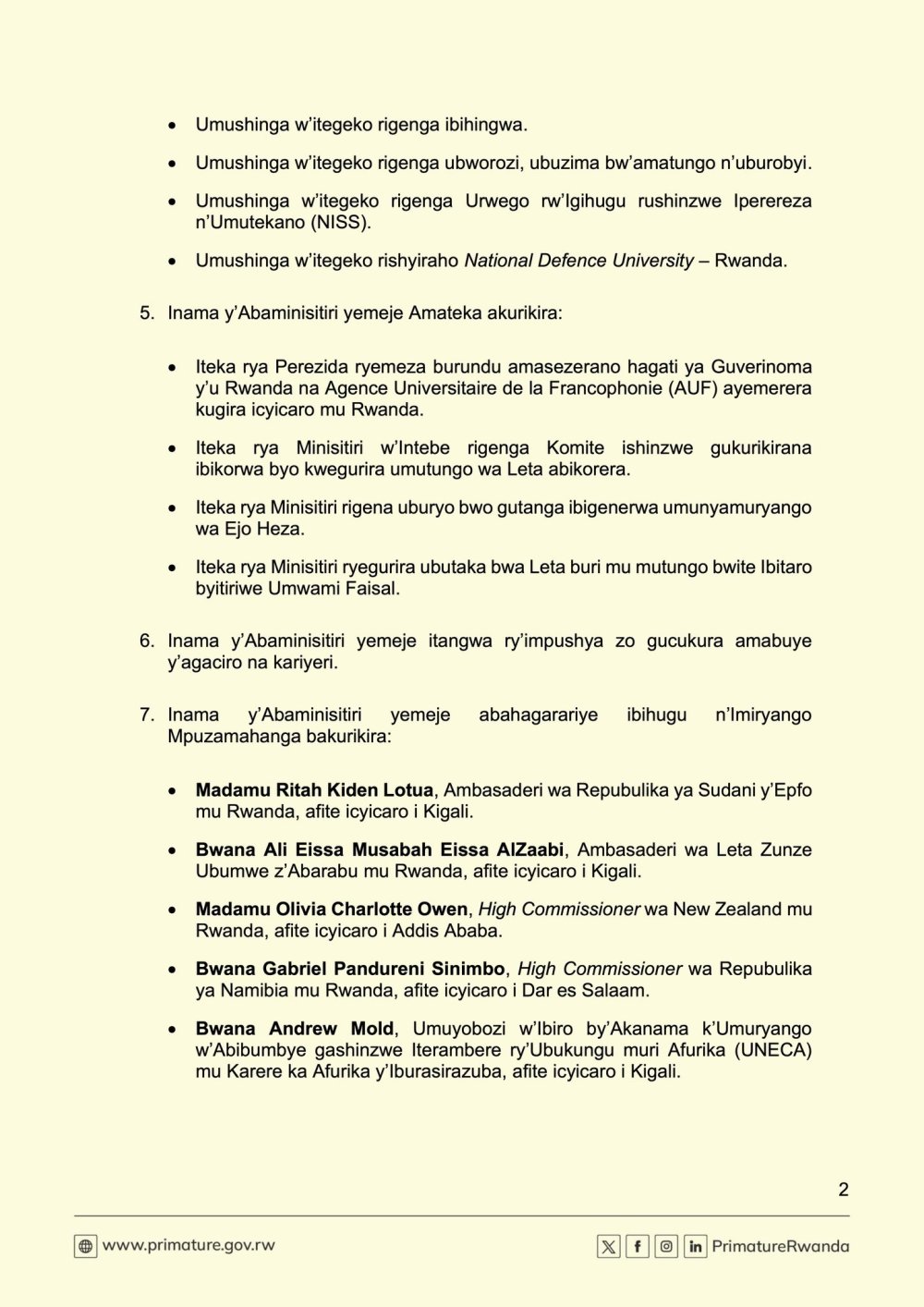 7. Inama y’Abaminisitiri yemeje abahagarariye ibihugu n’Imiryango Mpuzamahanga bakurikira: